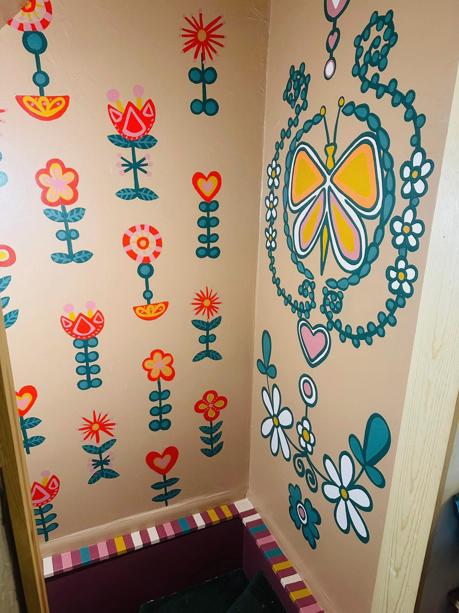 Chelsey Leigh Ness has lived in Ottertail County for the last 13 years. She uses many different mediums but finds herself drawn to the inspiration large mural art can have on her community. Elements of nature, bold lines, and colors are what feed her creative spirit. Helping those around her through art has always been the driving force behind her creativity. She has worked on murals in the local Otter Cove Children's Museum, taught kids art classes, and created murals in people's homes and local business/non-profits.